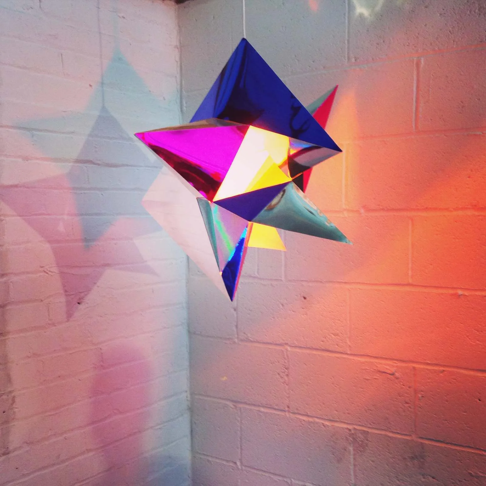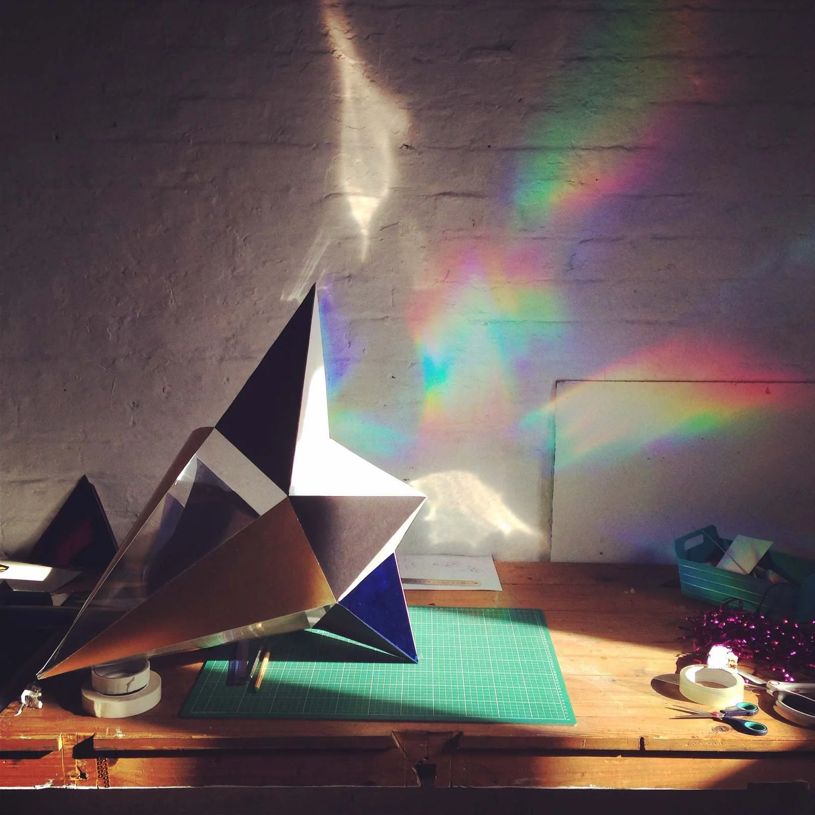 The FUNKISPHERE is a continuation of an ongoing project exploring geodesic spheres and paper structures. It is an instalation of 3 planets intended to explore mathematical geometric principles and crystal formation patterns, creating hybrid celestial shapes that appear to morph into being and will be exhibited at THRESHOLD FESTIVAL from Fri 27th- 29th March.