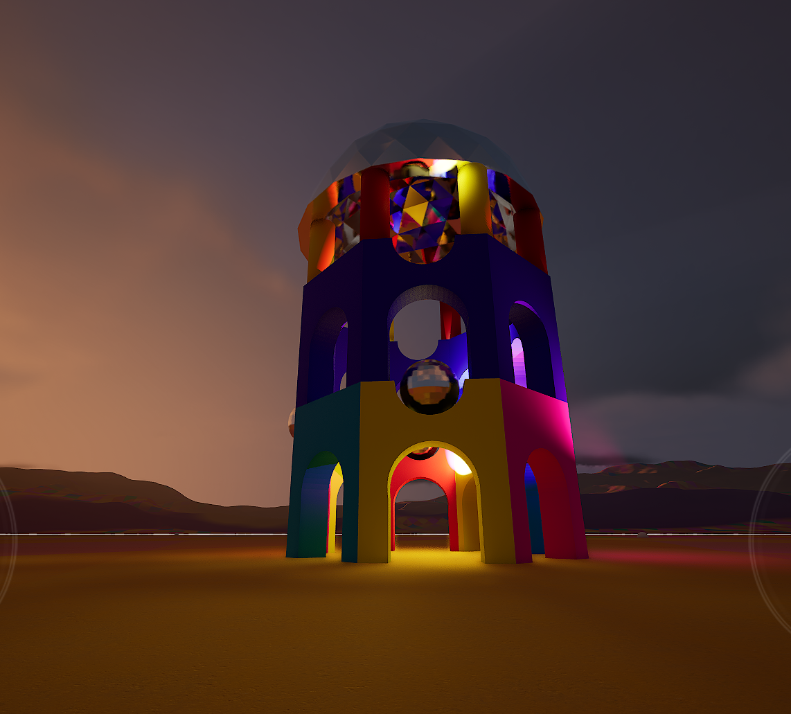 The inital model is inspired by traditional Middle Eastern architecture. Was really fun to play with the lighting and seeing how dramatic it can make the structures appear. Also exploring new surface textures on the mirror dome worked really well with the design… loads of room for improvement of course.